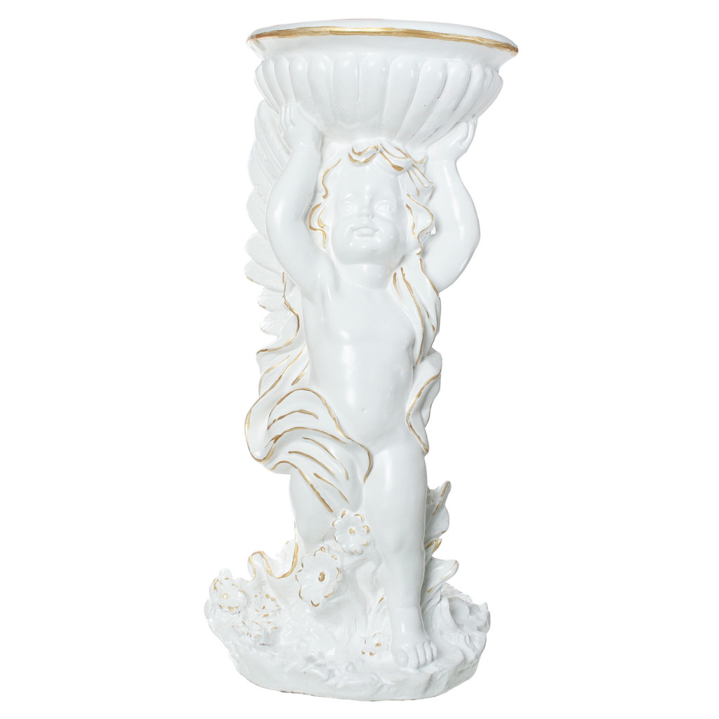 Позиция "Садовая фигура Ангел с чашей на голове, белый с золотом (Гипс)"